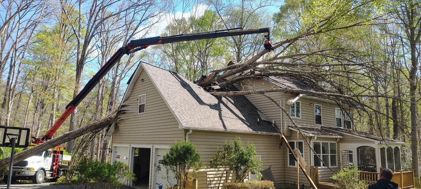 We recently removed this large tree from this Southern Maryland storm-damaged home.